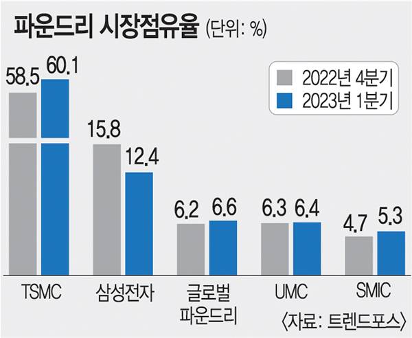 또한 인공지능(AI), 자율주행 등에 필요한 반도체 수요가 급증하면서 TSMC로 물량이 쏠리고 있다. 주요 팹리스 업체들은 TSMC 외에 다른 파운드리 업체를 찾고 있다. 엔비디아는 AI 반도체 일부를 삼성전자에 맡기는 방안을 검토 중인 것으로 알려졌다. 젠슨 황 엔비디아 최고경영자(CEO)는 지난 5월 “공급망 안정성을 갖추는 것이 중요하다. 엔비디아는 삼성전자를 통해서도 반도체를 생산하고 있고, 인텔 파운드리를 활용할 가능성도 열어두고 있다”고 말했다.