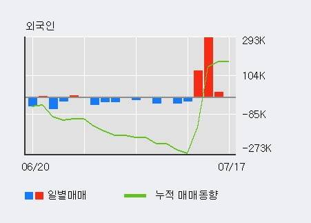 지난 한달을 기준으로 보면 외국인이 16.2만주를 순매수한 반면, 기관은 5,846주를 순매도했고, 개인들도 13.9만주를 순매도한 것으로 집계됐다. 같은 기간 이 종목의 거래비중은 외국인과 개인이 각각 19.4%, 79.0%로 비중이 높다.