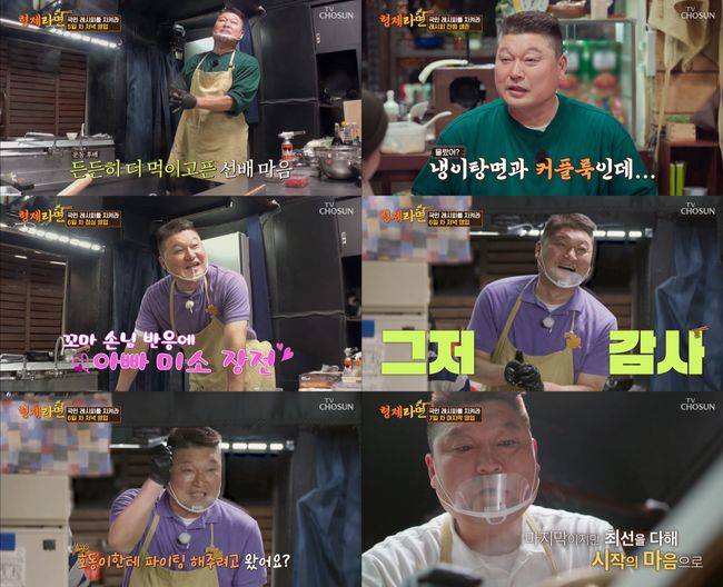 강호동은 함께 하는 형제들과의 케미도 완벽하게 만들어 갔다. 특히, 특유의 노련미를 바탕으로 강호동은 밀물처럼 손님이 몰려와도 긴장한 기색 없이 주방과 홀을 오갔으며, 필요한 것이 보일 땐 묵묵히 서로를 챙겨주는 등 시간이 지날수록 단단한 호흡으로 ‘형제라면’은 문전성시를 이루게 됐다.
