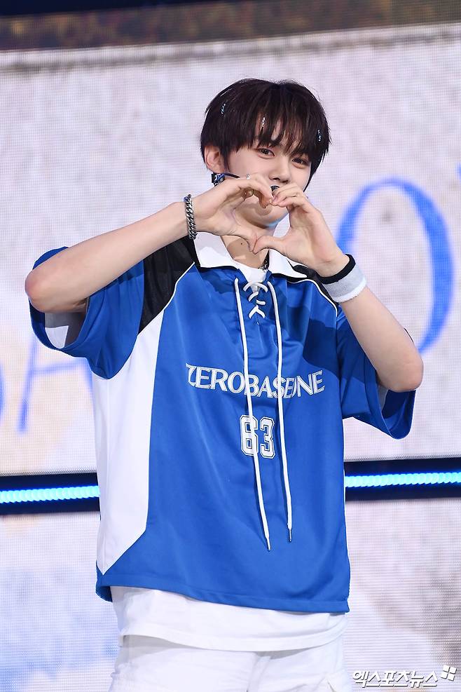 이날 더쇼에 참석한 그룹 제로베이스원(ZB1) 김규빈이 무대를 선보이고 있다.