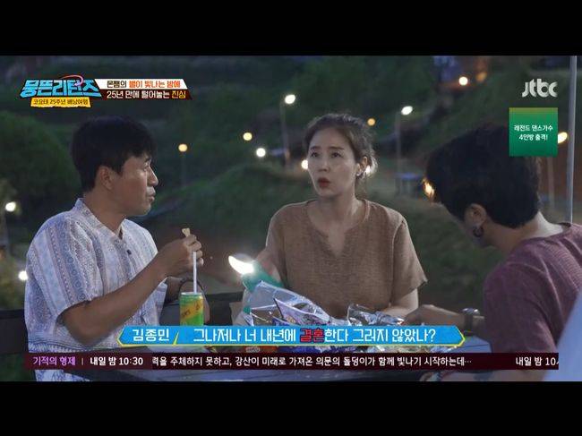저녁을 다 먹고 난 이들은 허심탄회한 이야기를 나누었다. 김종민은 “너 결혼한다고 하지 않았냐”라고 말했다. 그러자 신지는 “아니, 나 허언증”라며 씩 웃었다.