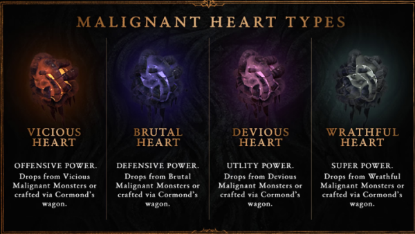 악의 심장을 획득하기 가장 좋은 콘텐츠는 신규 던전 '악의 굴'이다. 악의 종자를 처치하면 2개의 종양과 마주한다. 하나는 항상 진노의 종양이며, 다른 하나는 던전의 유형에 따라 달라진다.