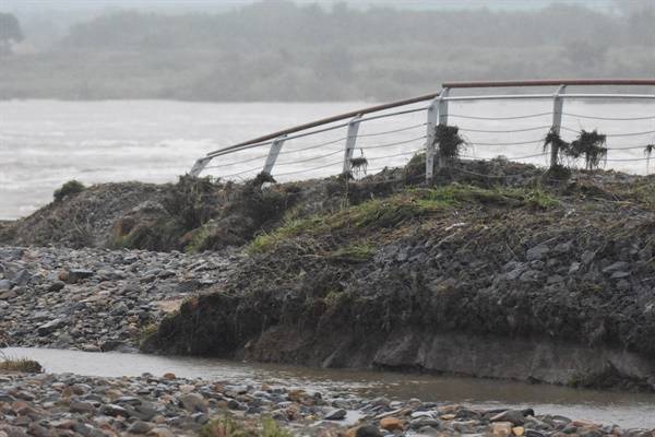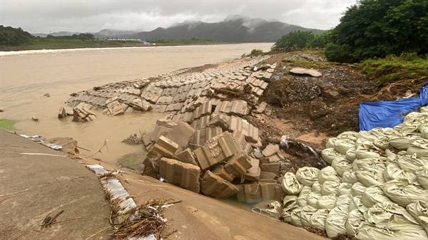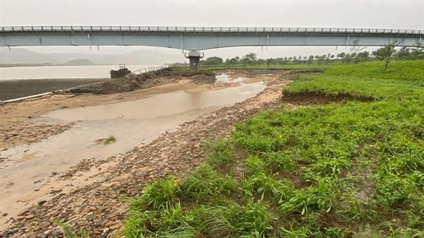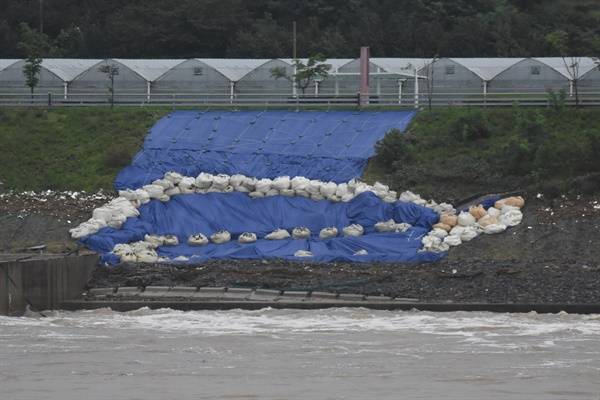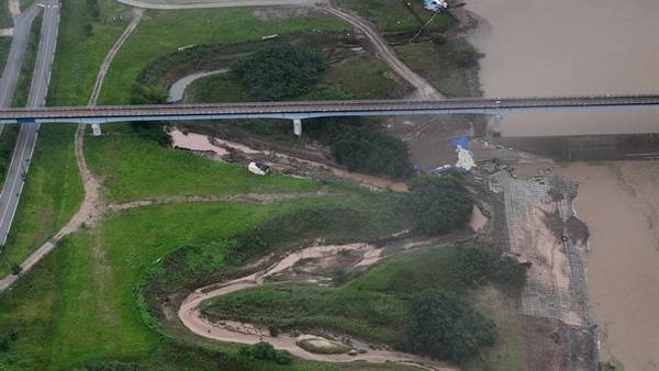 강 건너편 제방 일부도 붕괴해 응급 복구 공사를 해놓은 것이 눈에 들어왔다. 양쪽 제방이 모두 위태로운 것이다.
