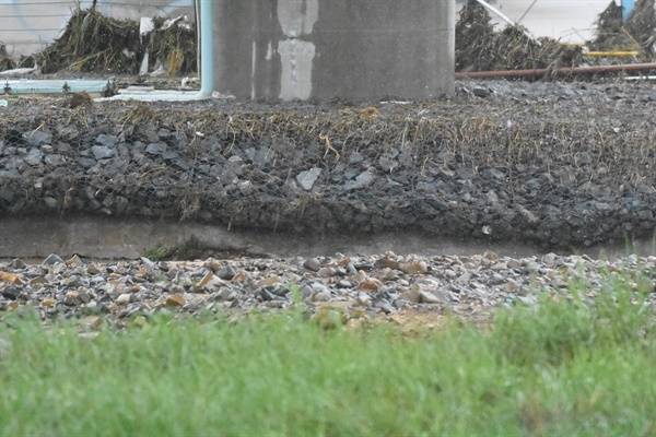 | ▲ 구미보 왼쪽 둔치가 그대로 뜯겨나갔다. 그 면적이 축구장만 하다. |