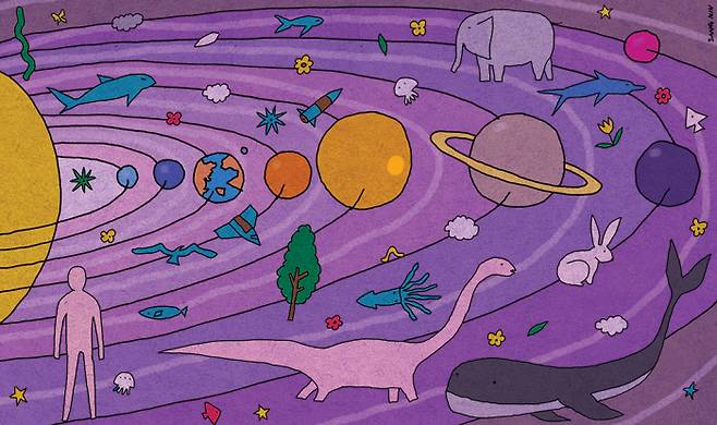 “딱 하나로 정해진 중력법칙을 따라 행성 지구가 태양 주위를 오랜 시간 공전하는 동안, 정말 단순한 시작에서부터 이토록 아름답고 경이로운 온갖 다양한 형태의 생명이 진화했고, 지금도 진화하고 있다.” 다윈의 <종의 기원>에는 이렇게 내가 옮겨 본 유명한 마지막 부분이 있다. 어쩔 수 없는 물리학자인 나는, 고정된 중력법칙과 생명의 다양성이 모순되는 것이 아니라는 다윈의 통찰을 읽을 수 있다고 생각한다. 자연현상의 다양성은 자연법칙의 단순한 동일성과 함께한다. 같아도 다를 수 있다.