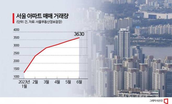 6월 서울 아파트 거래량이 1년10개월 만에 4000건 지붕을 뚫을 기세다.
