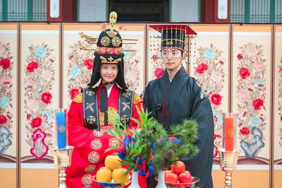 먼저 남다른 비주얼 합을 자랑하는 이준호와 임윤아의 전통 혼례 사진이 눈길을 끈다. 두 배우는 단아한 미소를 머금고 혼례복을 완벽하게 소화해내 감탄을 부른다.
