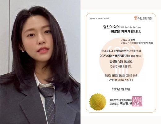 [마이데일리 = 오윤주 기자] 그룹 AOA 출신 배우 설현(본명 김설현·28)이 루게릭 환자들을 위해 1000만 원을 기부했다.