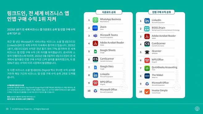 비즈니스 앱 수익 1위는 링크드인