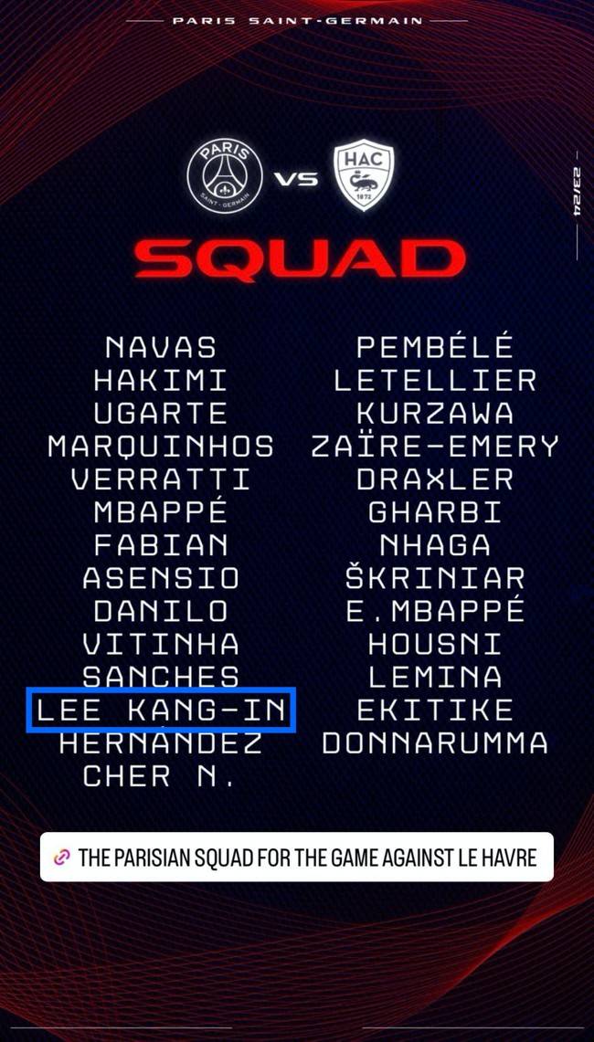 이강인도 당당하게 이름을 올렸다. 이강인은 지난 9일 파리에 입성했다. PSG는 구단 홈페이지를 통해 "이강인은 PSG와 계약했다. 2028년 6월까지의 계약을 발표하게 돼서 기쁘다. 이강인은 PSG의 첫 번째 한국인 선수가 됐다"라고 공식 발표했다. 등번호는 19번이고, 이적료는 2,200만 유로(약 310억 원)다.