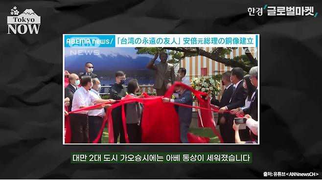 작년 7월8일 아베 신조 전 일본 총리가 총탄에 사망한지 두 달여 뒤인 9월24일 대만 2대 도시 가오슝시에는 아베 동상이 세워졌다. 지역 유지들의 기부로 제작된 동상에는 "아베 전 총리는 생전 대만을 전력을 다해 지지했다. 감사의 마음을 담아 이 동상을 제작했다"라고 쓰여 있다.