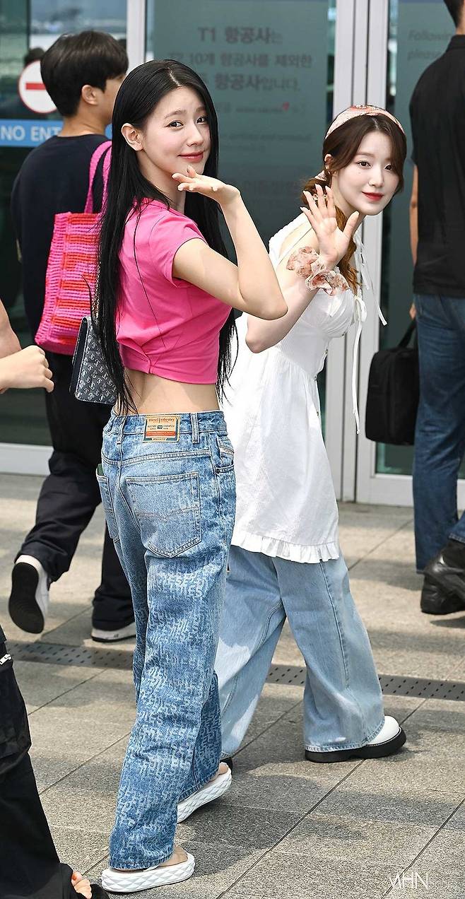 이날 (여자)아이들 미연, 슈화가 출국장으로 향하고 있다.