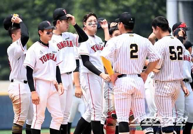 제78회 청룡기 전국고교야구선수권대회 비봉고와 마산용마고의 경기가 21일 목동야구장에서 열렸다. 마산용마고가 10대1, 6회 콜드게임승을 거두며 8강에 진출했다. 경기종료 후 인사를 나누는 양팀 선수들의 모습. 목동=허상욱 기자wook@sportschosun.com/2023.07.21/
