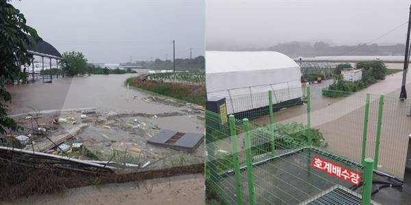 또한 농지 내 물을 방류해 줄 배수펌프장조차 작동하지 않아 물이 그대로 농지에 흘러들어와 피해를 가중시켰다. 주민들이 임시방편으로 오전 8시경에 톤백(마대자루)으로 수문을 막는 작업을 완료했으나, 이미 비닐하우스 천장까지 물이 들어찬 상태였다.