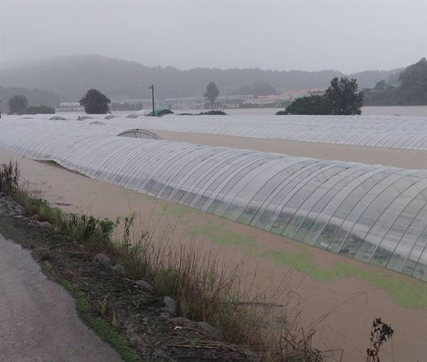 | ▲ 15일 7시 20분, 비닐하우스에 가득 물이 찬 모습. (주민 제공) |