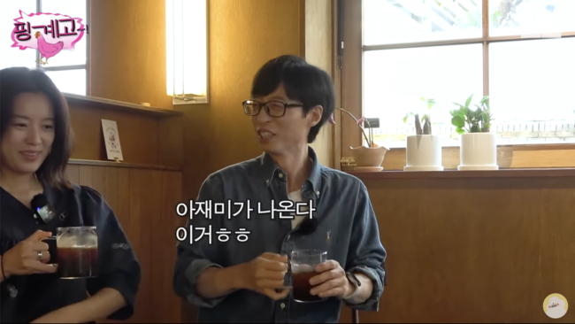 이후 커피를 먹으면서 얼음을 돌리는 조인성의 모습에 유재석은 "인성아, 너도 아재미가 나온다"라며 "우리가 숨길 수가 없어"라고 숨길 수 없는 조인성의 아재미를 콕 집어서 언급했다.