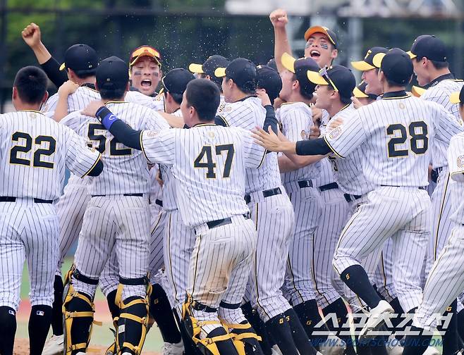22일 서울 목동구장에서 열린 제78회 청룡기 전국고교야구선수권대회 경기상업고와 대구상원고의 8강전. 4대3 역전승을 거두며 4강에 진출한 경기상업고 선수들이 환호하고 있다. 목동=정재근 기자 cjg@sportschosun.com/2023.7.22/