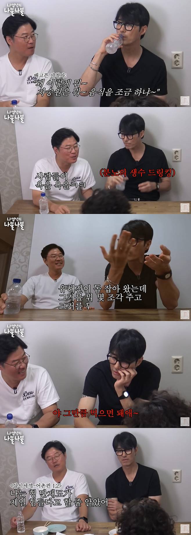 철저한 자기관리로 유명한 차승원은 간헐적 단식에 대해 이야기했다. 시간을 정확히 지켜 하루 1.5끼를 먹는다는 차승원은 "내가 보기엔 덜 먹어야 한다. 내가 '삼시세끼' 하면서도 '왜 이렇게 차승원은 음식을 조금하냐'(고 했다)"고 식사량 논란을 언급했다. 나영석PD 역시 "사람들이 욕을 욕을"이라고 맞장구쳤고 차승원은 "유해진이 돔 잡아왔는데 그걸 뭐 몇 조각 주고 어디다 버렸냐 하는데 그만큼 먹으면 된다. 적당하게 먹는 게 좋아"라고 자신의 소신을 밝혔다.