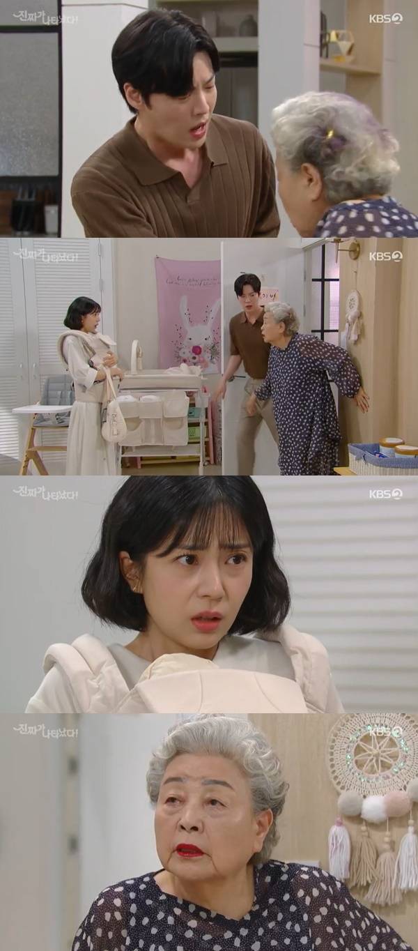 오연두는 막 아기를 데리고 나가려다가 은금실의 방문에 경악 아기를 데리고 방에 숨었다. 은금실은 공태경에게 모친 이인옥이 앓아누웠다는 사실을 알리며 다그치다가 방에서 아기 울음소리를 듣고 숨어있던 오연두를 찾았다. (사진=KBS 2TV ‘진짜가 나타났다’ 캡처)