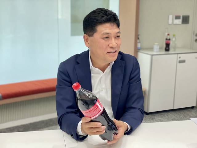 하지만 보틀 투 보틀의 끝엔 언제나 의문이 남더라고요. 아무리 재사용 비율을 늘린다고 해도 인류가 플라스틱 제품을 사용하는 한 플라스틱 쓰레기 문제를 완전히 해결할 수는 없을테니까요. 플라스틱 사용 자체를 종식시키는 ‘패러다임의 대전환’은 불가능한 것일까요? 아직까지 실험 단계이긴 하지만, 해외에서는 플라스틱 없이 음료를 판매하기 위한 실험이 이미 시작됐다고 해요. 그래서 찾아갔어요. 바로 해외 200여개 국가에 진출해 있는 코카콜라의 한국 본사로요. 한국코카콜라는 지난 5월 국내에서 재생 플라스틱 원료 10%를 함유한 패키지의 제품을 출시했죠. 세계으로 가장 많은 음료를 팔고 있는 이 회사는 과연 플라스틱을 줄이기 위해 어떤 연구를 하고 있는지, 한국코카콜라의 테크니컬 디렉터 최진호 상무님(아래 사진)의 이야기 한 번 들어볼까요?