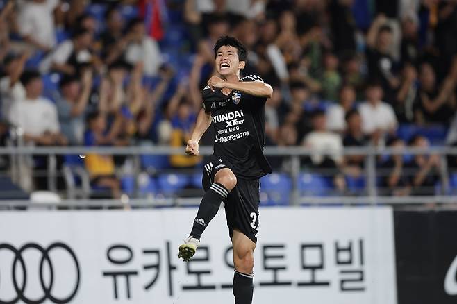 김민혁은 제주전에서 골 맛도 봤다. 이동경의 크로스를 문전에서 슈팅으로 마무리했다. K리그 통산 200경기(17골 22도움) 자축포였다. 이번 시즌 1골 3도움으로 도우미 역할도 척척 해내고 있다.