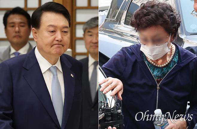 | ▲ 윤석열 대통령(왼쪽)과 장모 최은순씨(오른쪽). 21일 윤 대통령의 장모 최은순씨는 통장 잔고증명 위조 등 사문서위조 혐의에 대한 항소심에서 유죄 판결을 받고 법정구속됐다. |