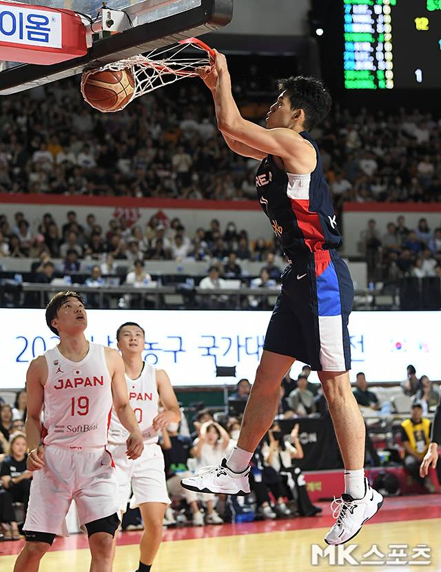 숙명의 한일전 슬램덩크 꽂는 하윤기 [MK포토]