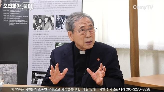 | ▲ 함세웅 신부가 오마이TV <오연호가 묻다>에 출연해 인터뷰를 하고있다. |
