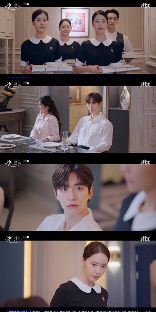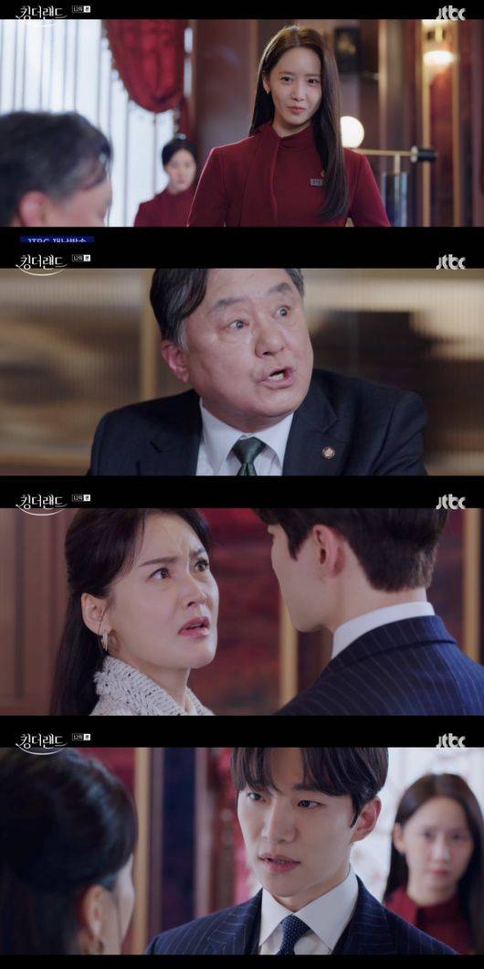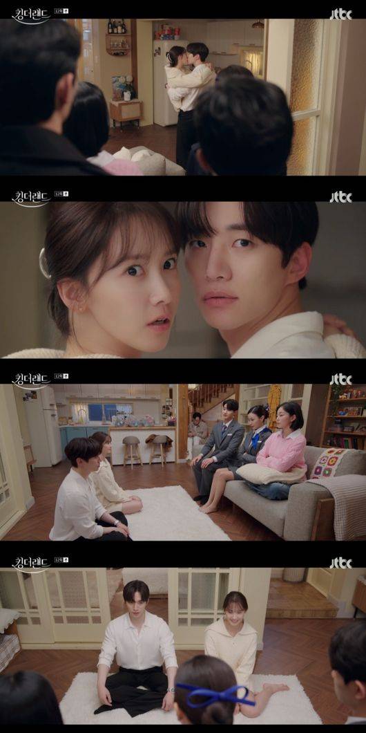 23일 방송된 JTBC 토일드라마 ‘킹더랜드’(극본 최롬(팀 하리마오), 연출 임현욱, 제작 앤피오엔터테인먼트, 바이포엠스튜디오, SLL)에서는 천사랑(임윤아 분)이 구원(이준호 분)의 정략결혼을 알게 되는 모습이 그려졌다.