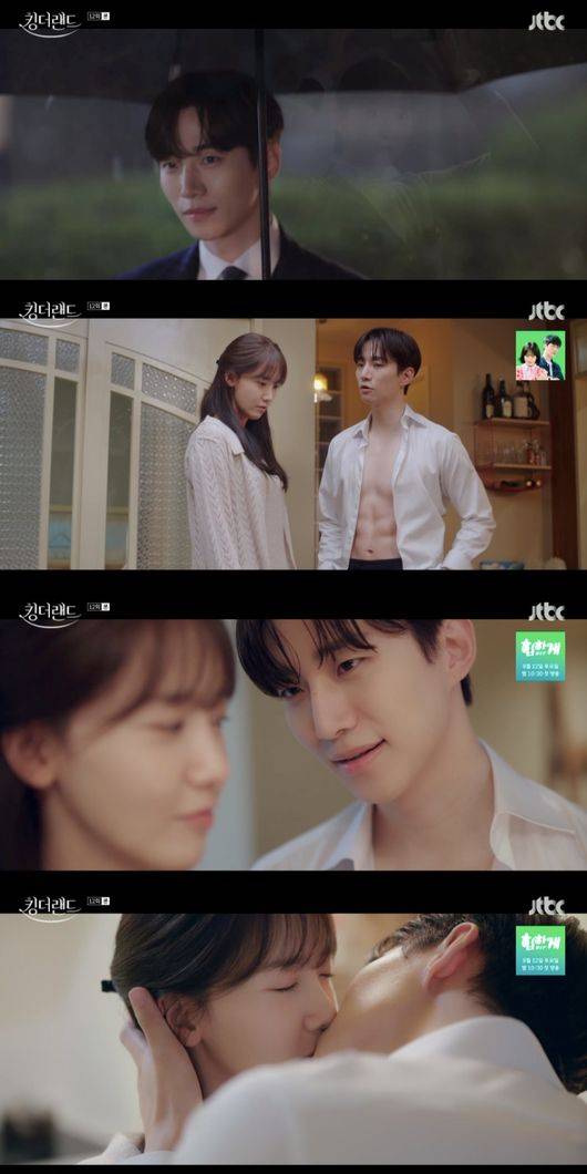 이후 직원들과 함께 회식한 천사랑을 마중 나간 구원. 그는 천사랑에 우산을 씌워주다 되려 비를 다 맞았고, 천사랑 집에서 옷을 말렸다. 그러다 천사랑의 비명을 듣고 달려온 구원은 “왜 옷을 다 벗고 나왔냐”며 부끄러워하는 천사랑에 미소지었다. 이어 그는 “아니 근데 볼 거 다 봐 놓고 왜 이렇게 부끄러워해. 왜 이렇게 수줍어 하지? 귀엽게? 이렇게 사랑스러우면 이렇게 가만히 있을 수가 없잖아. 책임져”라며 달달한 키스를 했다.