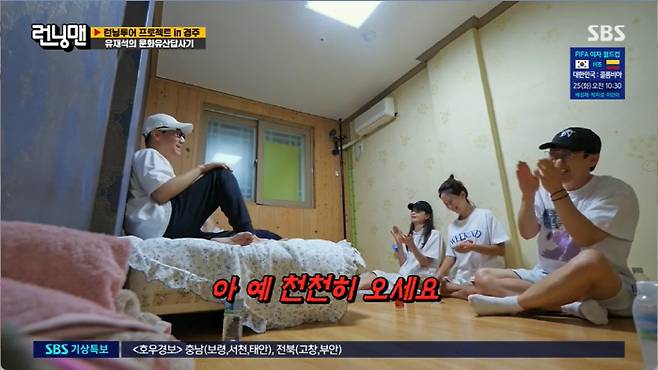 수학여행의 설렘을 품은 멤버들은 추억의 유스호스텔로 입실했다. 전소민은 "무슨 수련회 온 것 같다"라 했고 지석진은 "난 여기 혼자 살래도 살겠다"라며 좋아했다. 치킨까지 시켜 옹기종기 모인 멤버들.