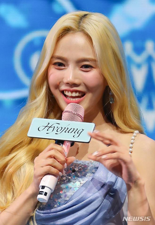 걸그룹 오마이걸 효정이 24일 서울 광진구 예스24 라이브 홀에서 열린 미니 9집 '골든 아워글래스(Golden Hourglass)' 미디어 쇼케이스에서 인사말을 하고 있다.