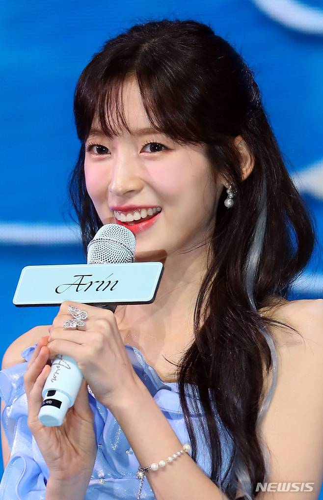 [서울=뉴시스] 최진석 기자 = 걸그룹 오마이걸 아린이 24일 서울 광진구 예스24 라이브 홀에서 열린 미니 9집 '골든 아워글래스(Golden Hourglass)' 미디어 쇼케이스에서 인사말을 하고 있다. 이번 미니 9집 '골든 아워글래스(Golden Hourglass)'는 지난해 3월 발매했던 정규 2집 '리얼 러브(Real Love)' 이후 약 1년 4개월 만으로, 이날 오후 6시 각종 음원 사이트를 통해 발매된다. 2023.07.24. myjs@newsis.com
