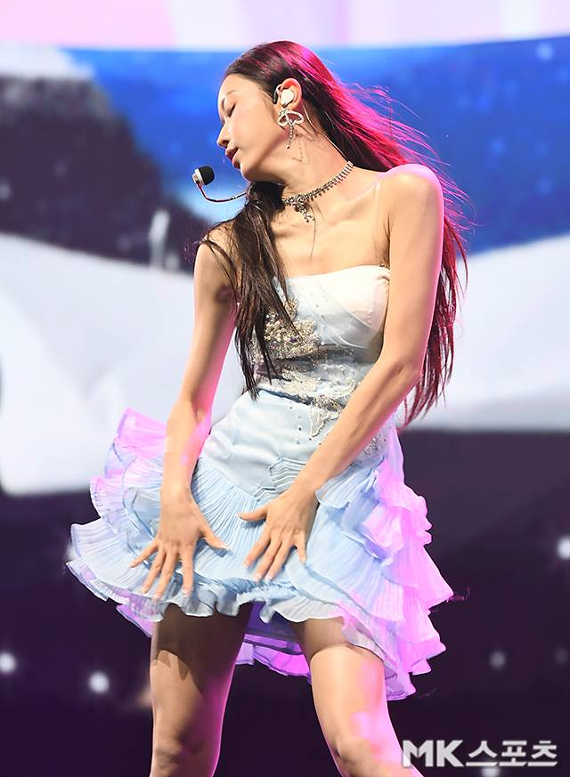오마이걸 유아가 신곡 무대를 선보이고 있다.