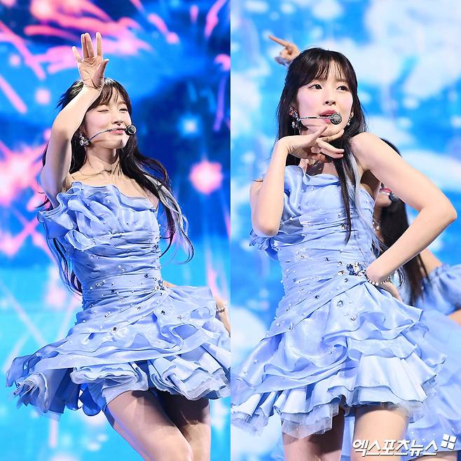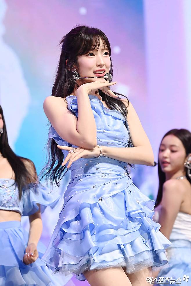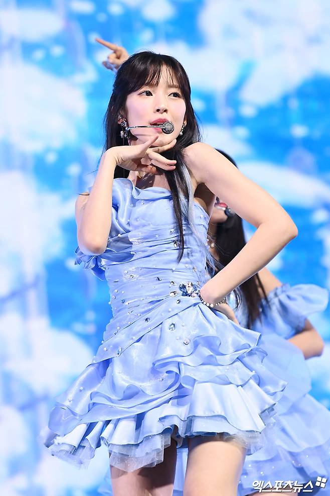 이날 쇼케이스에 참석한 오마이걸 아린이 무대를 선보이고 있다.