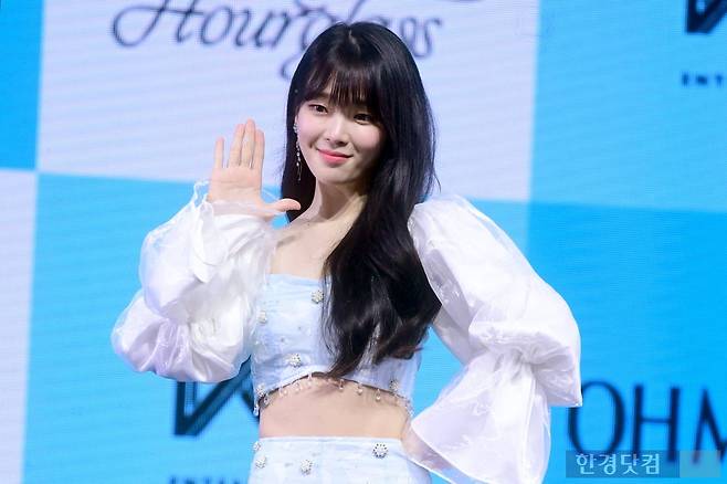 그룹 오마이걸 승희가 24일 오후 서울 광장동 예스24라이브홀에서 열린 미니 9집 앨범 'Golden Hourglass(골든 아워글래스)' 발매 기념 쇼케이스에 참석해 포토타임을 갖고 있다.