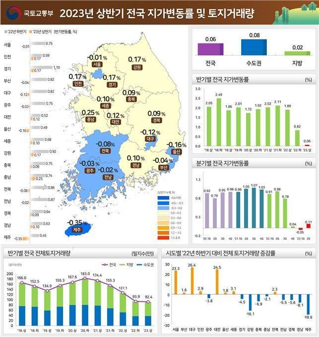 이에 따라 상반기 총 전국 지가변동률은 0.06% 상승했다.