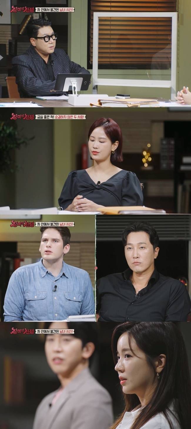 이날 프리젠터 이상민은 콜린의 아내 레슬리와 헤이즐의 남편 트레버가 같은 차 안에서 사망한 채 발견되었다는 사건으로 이야기를 시작한다. 이들이 배우자와의 문제를 이겨내지 못하고 스스로 목숨을 끊은 것으로 밝혀졌는데. 이에 김지민은 “쇼윈도 부부였나”라며 갑작스러운 동반자살에 의구심을 품기도. 이후 극단적인 선택을 결심할 정도로 둘을 힘들게 했던 부부 사이의 문제가 밝혀지자 “듣기 힘들다”며 이야기에 인상을 찌푸린다.