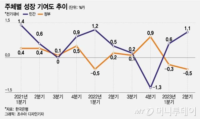 하준경 한양대 경제학부 교수는 "정부지출 증가율이 마이너스를 기록했다는 건 그만큼 재정 긴축 효과가 성장률에도 영향을 미쳤다는 것"이라고 말했다.
