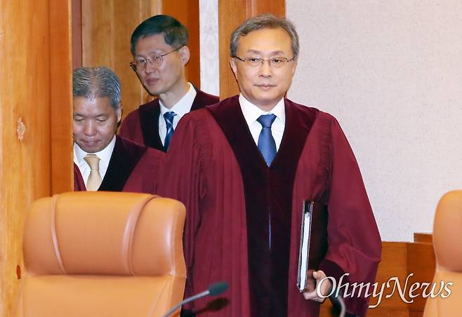 | ▲ 유남석 헌법재판소장과 헌법재판관들이 25일 오후 서울 종로구 헌법재판소 대심판정에서 이태원 참사 부실 대응 관련 이상민 행정안전부 장관에 대한 탄핵 심판 선고를 위해 입장하고 있다. |