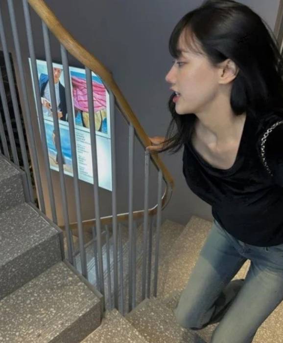 사진에는 이나은이 청바지들 입고 계단을 올라가는 모습이 담겼다.