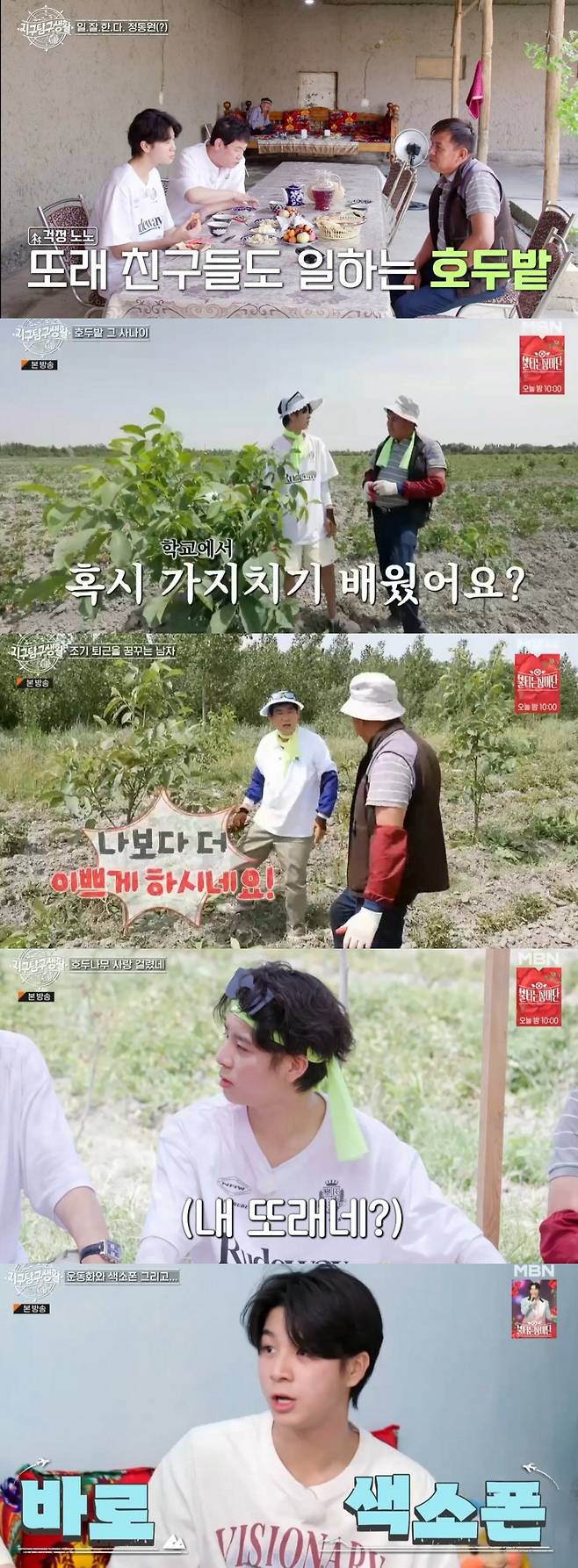 뒤이어 정동원과 이경규는 코빌의 10만 평 호두밭으로 향했고 코빌의 시범을 본 뒤 호두나무 가지치기에 나섰다. 정동원은 빠른 속도로 거침없이 가지를 쳐내 현장에 있던 사람들로부터 극찬을 받은 반면, 이경규는 일을 잘못해야 빠르게 퇴근할 수 있다면서 잔꾀를 부렸지만, 예상과는 다르게 코빌은 "형님이 나보다 더 예쁘게 하시네요"라는 칭찬을 건네 이경규를 좌절하게 했다. 특히 넓은 호두밭에서 각자 무한 가지치기를 이어가던 중 정동원이 이경규를 향해 "선배님, 살려주세요!"라고 외쳤지만, 이경규도 "동원아. 지금 나도 이러고 있어"라고 허탈한 답변을 남겨 배꼽을 잡게 했다.