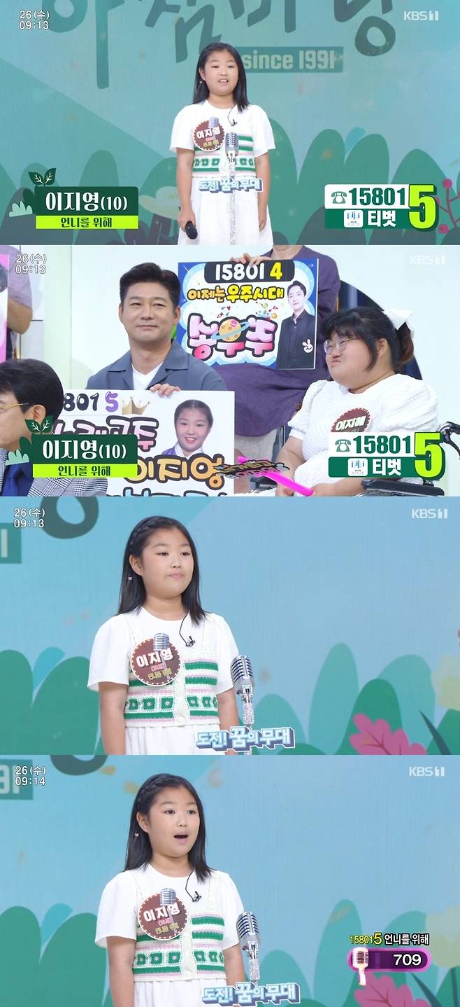 지적장애를 앓고 있는 언니를 위해 노래하는 이지영의 무대가 감동을 안겼다.