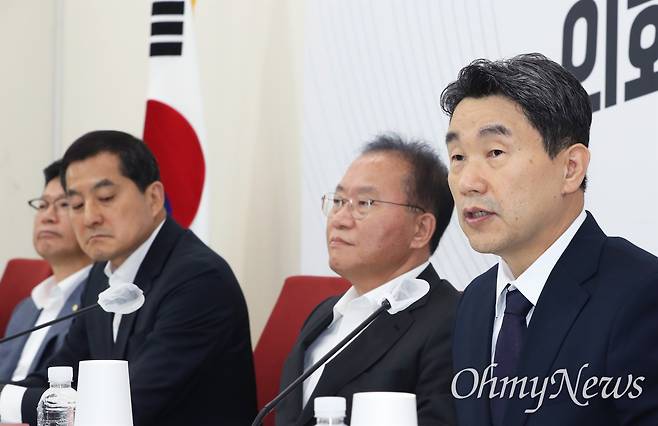 | ▲ 발언하는 윤재옥 원내대표 윤재옥 국민의힘 원내대표가 26일 서울 여의도 국회에서 열린 교권 보호 및 회복방안 관련 당·정협의회에서 발언하고 있다. 왼쪽부터 윤 원내대표, 이주호 부총리 겸 교육부 장관, 이태규 교육위 국민의힘 간사. |