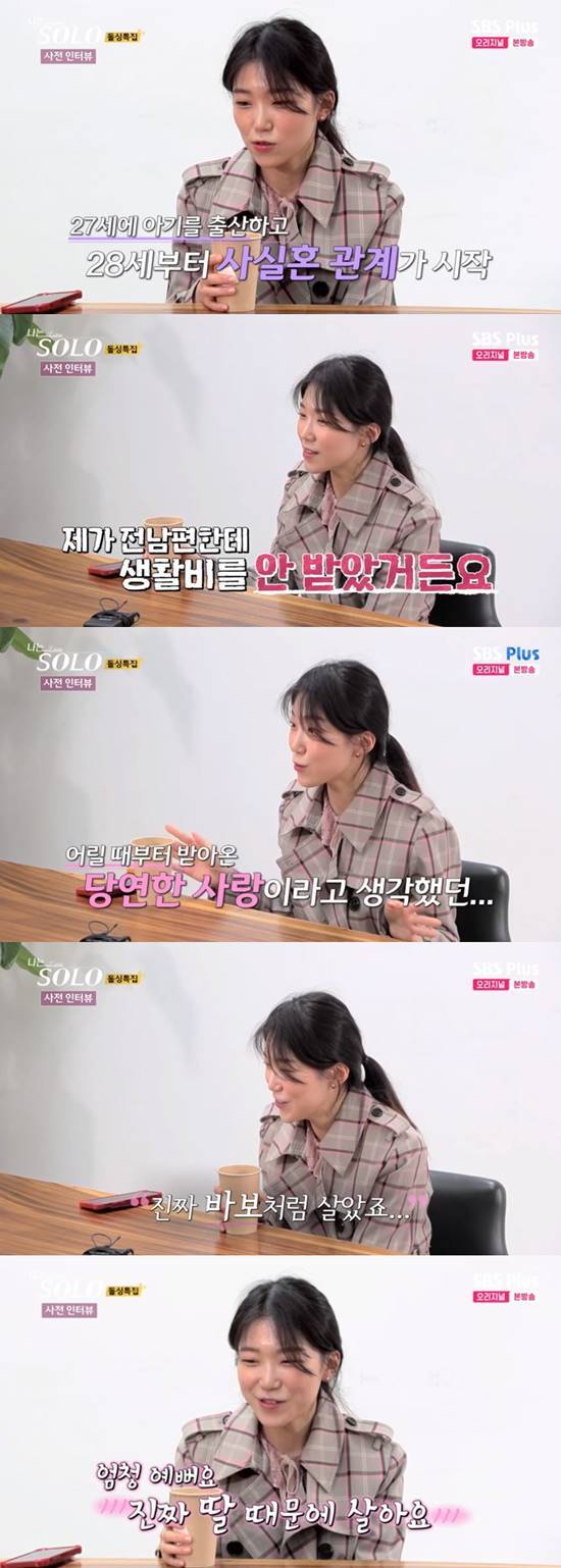 순자는 "사고를 쳐서 시집을 왔다. 27살에 아기를 출산하고 28살에 사실혼 관계가 시작됐다"라며 "전남편한테 생활비를 안 받았었다. 아빠 카드를 받아서 썼었다"라고 충격적인 사실을 전해 세 MC를 놀라게 했다.