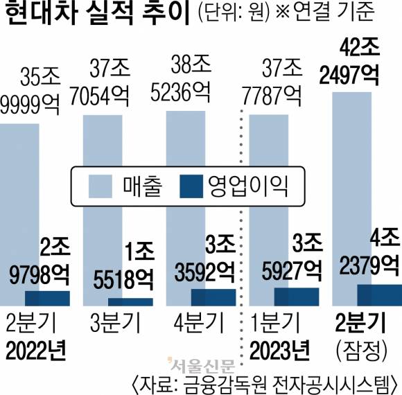 현대차 분기 영업익 ‘4조’ 시대… 2분기 연속 日도요타 제친다