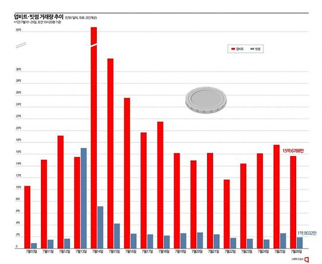 2위 빗썸 대비 하루 거래량 8배 넘어