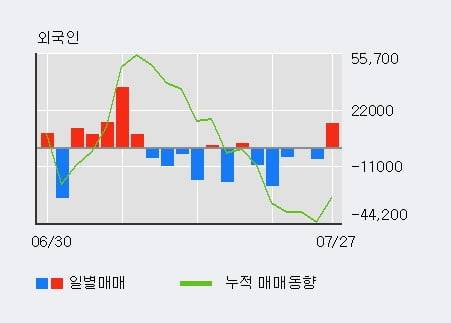 지난 한달을 기준으로 보면 기관이 11.2만주를 순매수한 반면, 외국인은 1.8만주를 순매도했고, 개인들도 10.3만주를 순매도했다. 같은 기간 이 종목의 거래비중은 외국인과 개인이 각각 21.1%, 72.6%로 비중이 높다.