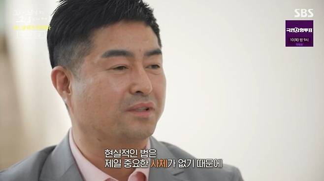 "제 심정은 이건 진짜. 살인으로 가야됩니다. 100프로 살인이 맞는데, 살인으로 가야되는데 했죠. 근데 현실적인 법은 제일 중요한 사체가 없기 때문에… 딱 떨어지는 보험사기는 되니까 사기로 일단 송치를 하고 검사님 하고 상의를 해서 살인 부분에 대해서 보강 수사를 하자.."