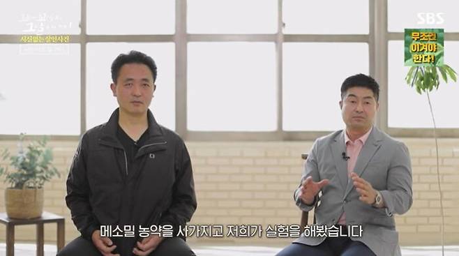 "메소밀 농약을 사가지고 저희가 실험을 해봤습니다. 생수에도 타고 맥주에도 타고. 거기서 약 남새가 난다든지, '맛이 이상하다' 하면 사람이 못 마실 거 아닙니까? 그 정도가 어떤지 저희들이 확인을 해야 되기 때문에 그래서 맛을 봤는데, 충분히 마실 수 있겠구나…"